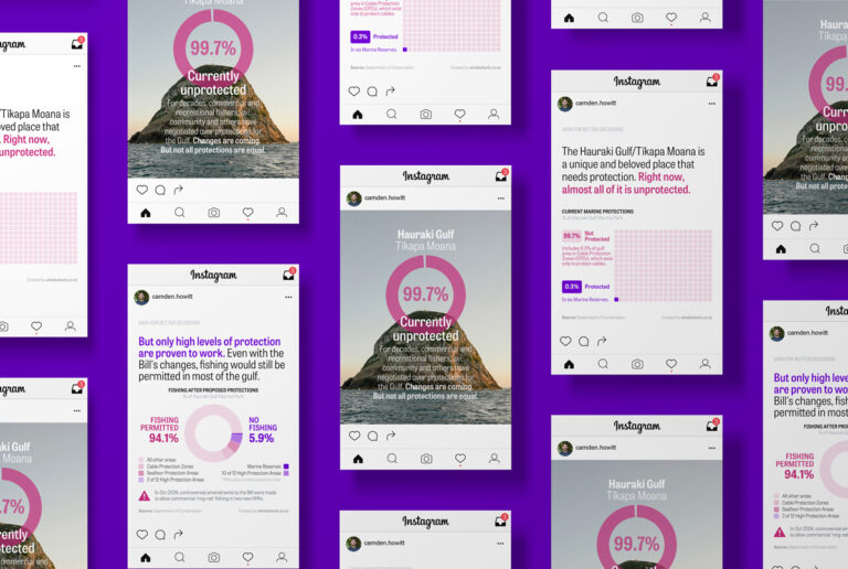 Design of infographics for a social media campaign to communicate the good, the bad, and the ugly about the New Zealand government’s Hauraki Gulf Marine Protection Bill. The infographics were designed to provide clarity, accessibility and objectivity to help simplify this complex issue.